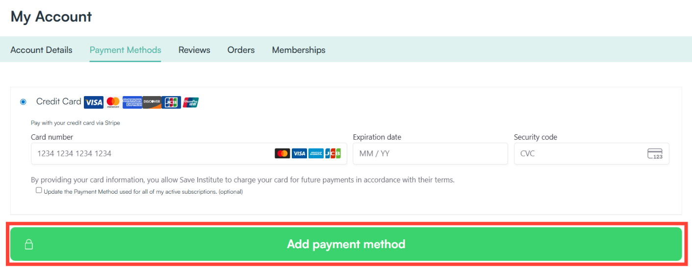 Once you’re on the ‘My Account’ page, click on the ‘Payment Methods’ section.