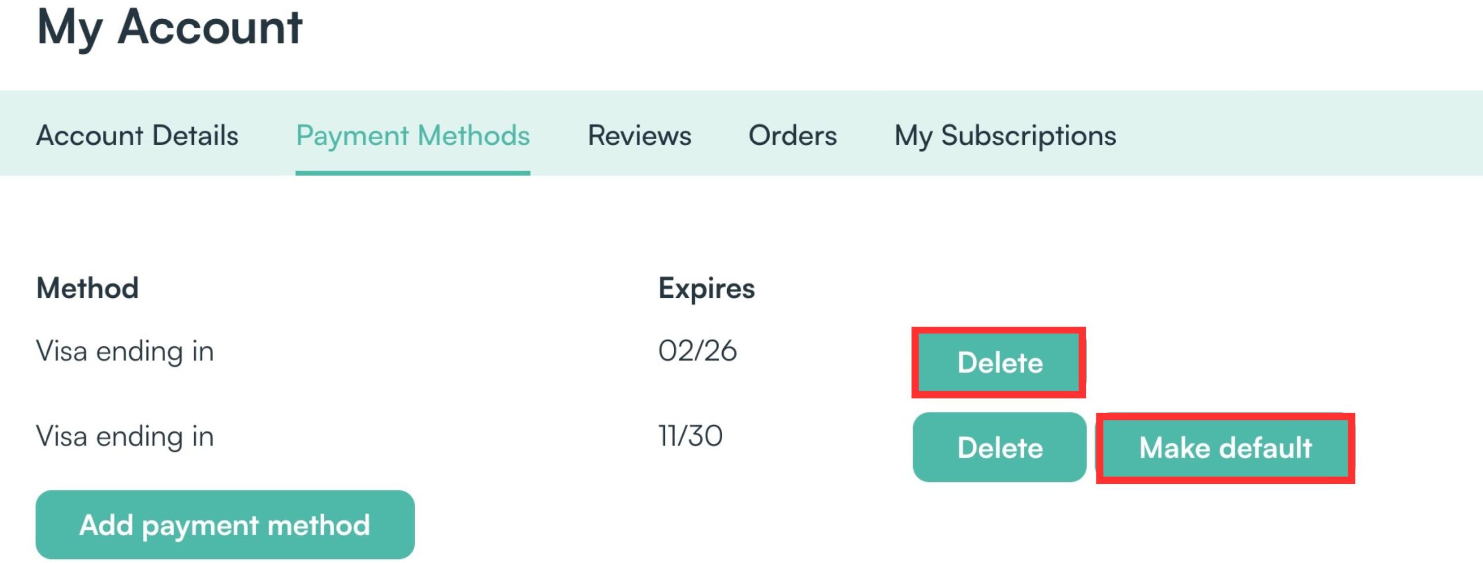 As a final step, click “Make default” to ensure your new card is charged for future payments. If needed, you can safely delete your previous card.